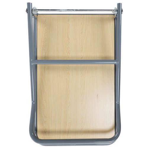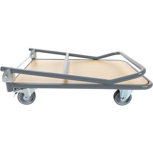 En un seul geste, le dossier se replie sur le plateau, transformant votre chariot de manutention en une plateforme compacte et facile à ranger.