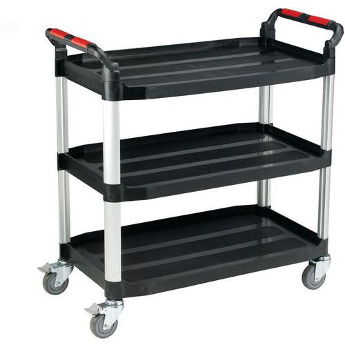 Chariot à plateaux en plastique - 3 plateaux et poignées - Aluminium
