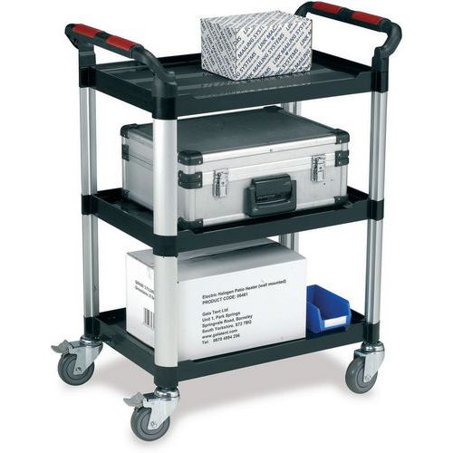 Chariot à plateaux en plastique - 3 plateaux et poignées - Aluminium