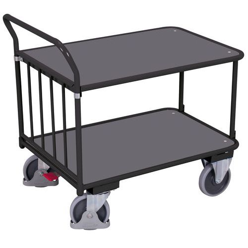 roues à bandage en caoutchouc thermoplastique gris anti-trace avec jante en plastique avec roulement à billes de précision, protège-pieds et protection contre l'effilochement, 2 roulettes pivotantes avec frein EasySTOP et 2 roulettes fixes, Ø 200 mm