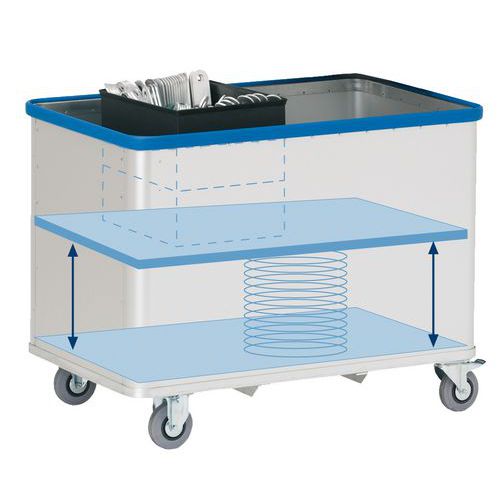 Chariot ergonomique ERGO Vario avec fond mobile permettant à l’utilisateur de travailler à hauteur constante.