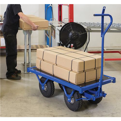 | Intitulé du produit | Chariot charge lourde, Force: 650 kg, Roue bandage: Pneumatique, Plateau largeur utile: 690 mm |