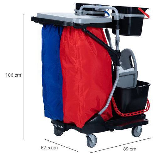 | Intitulé du produit | Chariot de lavage 2 seaux 4 L avec presse et sac plastifié, Capacité: 30 L, Coloris: Noir, Hauteur: 106 cm |