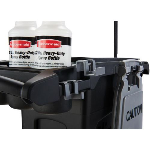 - Chariot de ménage tout-en-un en matière synthétique haute qualité pour le transport et le rangement du matériel de nettoyage courant.