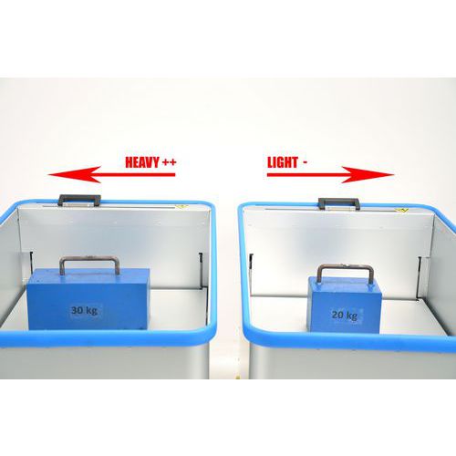 Hauteur de chargement et déchargement constante , le fond s’abaisse en continu sous le poids de la charge et remonte lentement lors du déchargement du chariot.