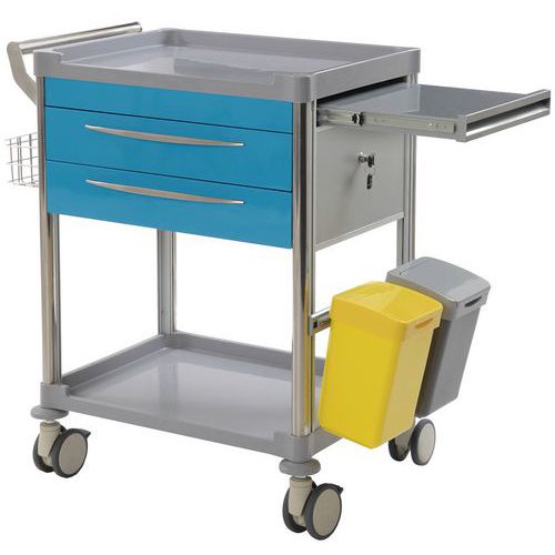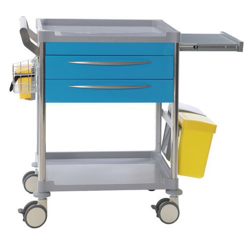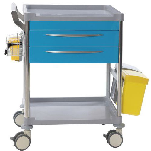 Chariot de soins 2 tiroirs Mdos, léger, maniable et tout équipé pour une utilisation adaptée au milieu hospitalier.