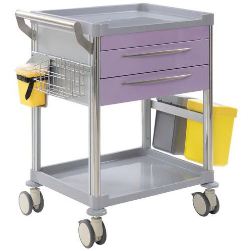 Chariot de soins 2 tiroirs Mdos, léger, maniable et tout équipé pour une utilisation adaptée au milieu hospitalier.