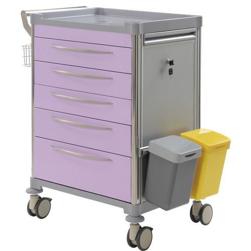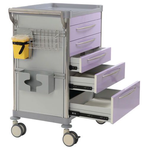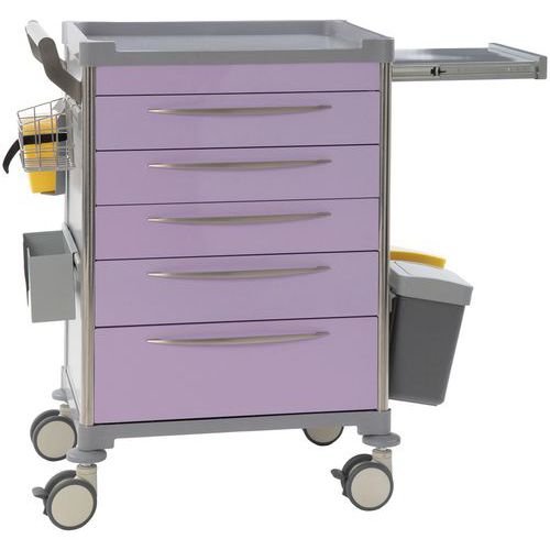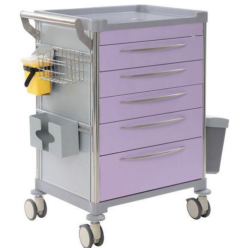 Chariot de soins Mdose 5 Tiroirs tout équipé, Type: Chariot de soins, Modèle: 5 tiroirs coloris lilas