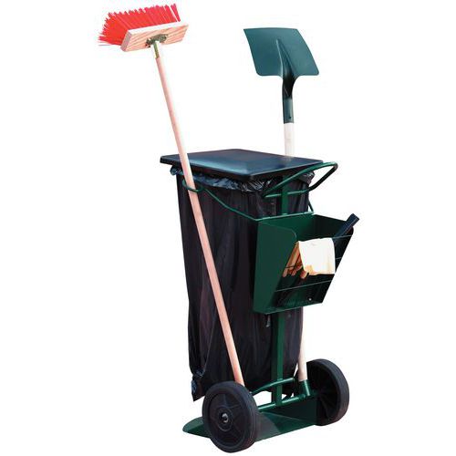 | Intitulé du produit | Chariot de voirie avec support pour sac poubelle de 150 L, Coloris: Vert, Longueur hors tout: 46 cm |
