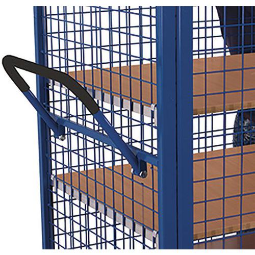 - Chariot grillagé avec porte battante 2 volets et verrouillage avec levier ou poignée tournante.