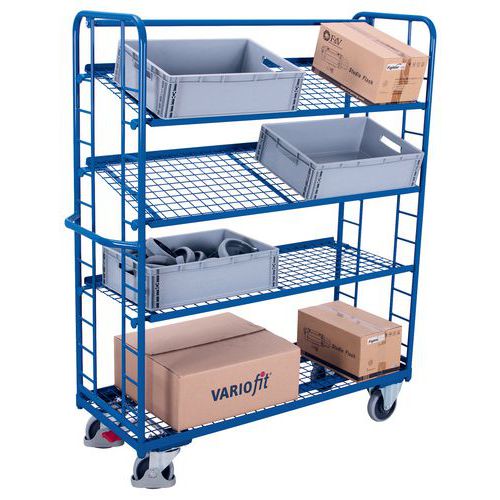 Chariot haut ergonomique 4 plateaux grillagés - Capacités 250 et 400 kg