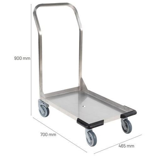 | Intitulé du produit | Chariot inox, Force: 120 kg, Hauteur hors tout: 900 mm, Largeur hors tout: 465 mm, Longueur hors tout: 700 mm |