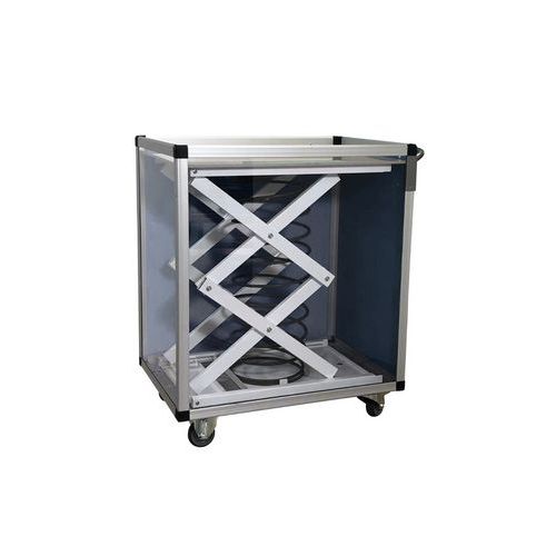 Chariot léger, très maniable, doté d'un fond mobile pour travailler à hauteur ergonomique