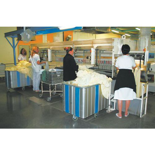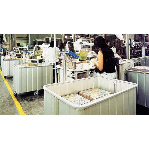 Chariot avec fond à déplacement vertical, maintient les produits toujours à hauteur de préhension constante. Grâce au fond vertical mobile, la marchandise est maintenu à la même hauteur. Confort de conduite élevé grâce à des roulettes souples à bandage en caoutchouc, qui ne laissent pas de traces, aux roulements à billes et aux écrans de protection. Disposition centrale des roulettes pour favoriser le rangement en espace étroit. Même en cas de chargement unilatéral du chariot, ce dernier ne bascule pas. Bord supérieur en profilé massif avec gainage synthétique. Roulements à rouleaux et pare-fils.