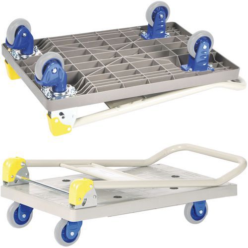 | Intitulé du produit | Chariot plastique dossier rabattable, Force: 150 kg, Hauteur hors tout: 1050 mm, Largeur hors tout: 450 mm |
