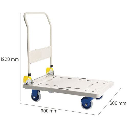 | Intitulé du produit | Chariot plastique dossier rabattable, Force: 300 kg, Hauteur hors tout: 1220 mm, Largeur hors tout: 600 mm |