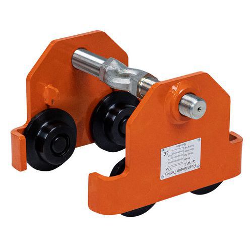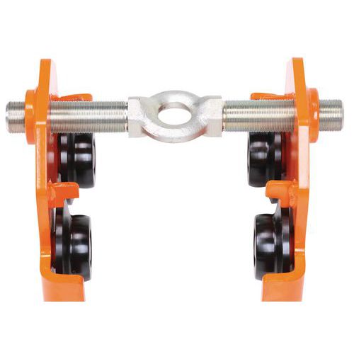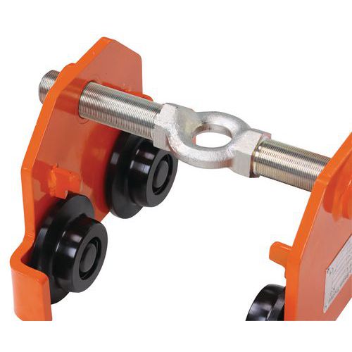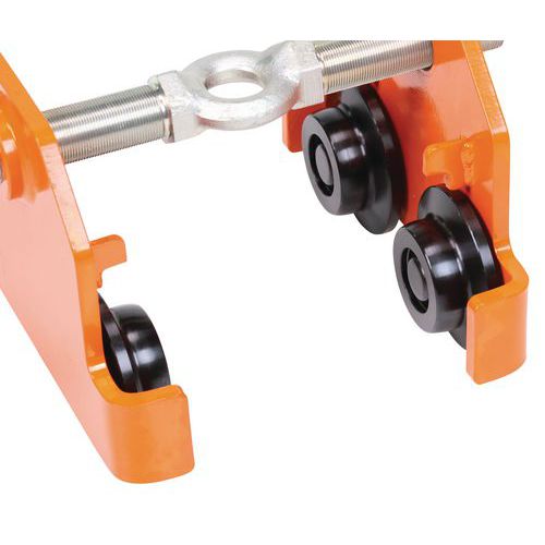 Convient à toutes les dimensions de poutrelles IPE et IPN. Facile à monter et à régler. Hauteur perdue très réduite car l’accrochage du palan se fait directement sur l’axe. Avec protection contre les chutes et le basculement, roulements à billes.