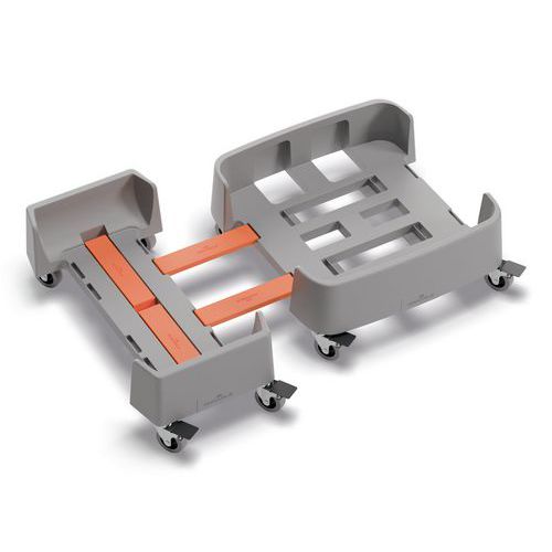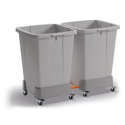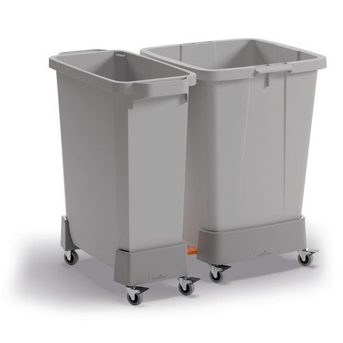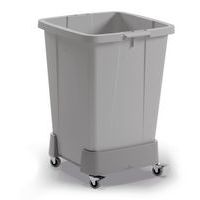Chariot pour poubelle DURABIN®. Convient pour une utilisation à l'intérieur et à l'extérieur sous abri. Peut être utilisé sur des surfaces planes dans les entrepôts, les zones de production, les cantines. Avec 4 roulettes pivotantes, dont deux avec freins.