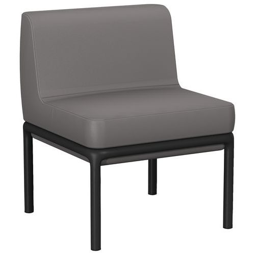 La gamme est construite sur le principe d’une structure métal carrée en 60x60 cm dans laquelle viennent s’insérer plusieurs types de coussins d’assise.