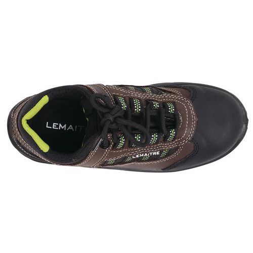 Chaussure de sécurité en cuir hydrofuge avec finitions vertes Cuir de 20-2,2 mm d’épaisseur pour une meilleure résistance mécanique et durabilité Surbout anti-abrasion : résistance additionnelle de la tige sur l’avant-pied, qui assure une longue vie au produitchaussure de sécurité polyvalente Semelle injectée PU2D antidérapante grâce à une structure à crampons, légère et flexible, au chaussant large pour un maximum de confort Talon décroché pour une sécurité renforcée, notamment sur les échelles