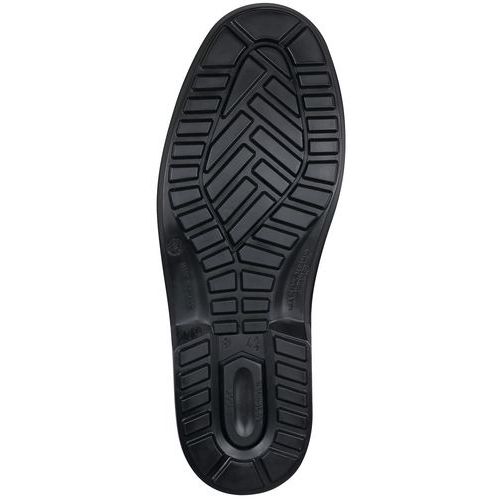 Chaussure de sécurité ville en cuir pleine fleur de 1,6-1,8 mm d'épaisseur, traité hydrofuge Modèle 0% métal, idéal dans les zones équipées de détecteurs de métaux (aéroports, entrepôts) Chaussure au design élégant avec doublure cuir, idéale pour le confort du pied, offrant une respirabilité optimale pour un confort unique Semelle anti-dérapante au pourtour biseauté rendant les crampons invisibles Chaussant large et confortable, très grand confort, absorbeur de chocs au talon, talon décroché