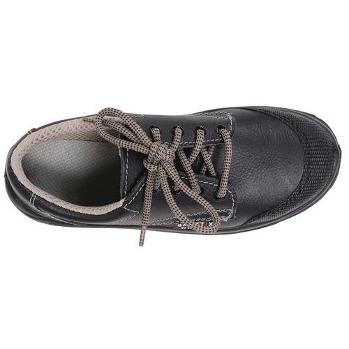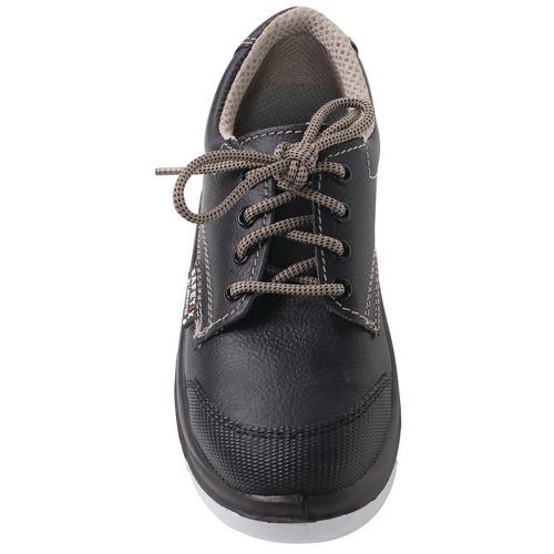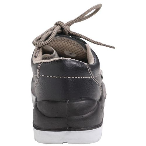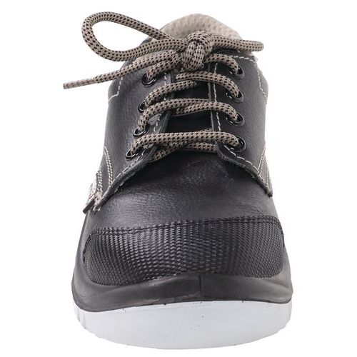 Chaussure de sécurité basse en cuir grainé hydrofuge Surbout à l’avant du pied pour une protection supplémentaire Insert anti-perforation : la résistance de l'acier au service de votre sécurité Embout acier 200J Semelle tout terrain spécifique aux activités extérieures et au BTP Grip profilé antidérapant, absorption des chocs au talon, résistance aux hydrocarbures