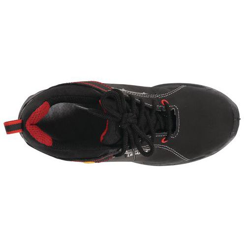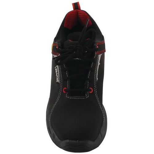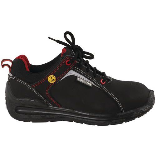 Chaussure de sécurité S3 en cuir nubuck hydrofuge avec doublure respirante Renfort avant en matière anti-abrasion pour une meilleure résistance à l’abrasion sur les parties les plus sollicitées de la chaussure Chaussure de sécurité électro-statiquement dissipatrice idéale pour les postes où la prévention de l'accumulation de charges électrostatiques est nécessaire Attaque talonnière arrondie, pour un déroulement naturel du pied durant la marche et un grand confort lors de la conduite de véhicule Semelle à effet ressort anti-fatigue, brevet Parabolic