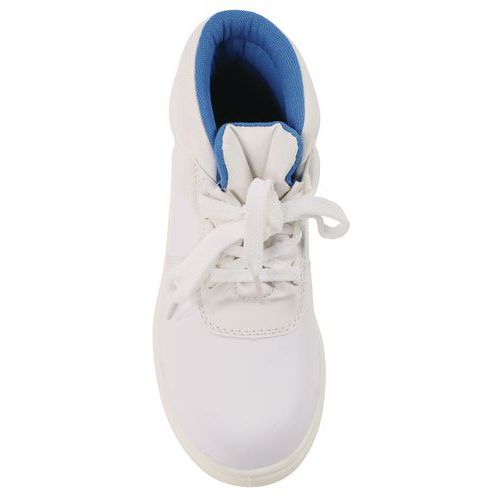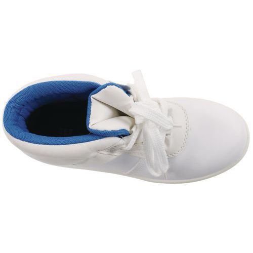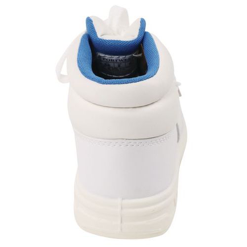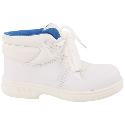 Chaussures de sécurité brodequin albus à lacets blanc S2 résistantes à l'eau. Avec embout de sécurité en acier. Antistatique et antidérapante. Semelle double densité.