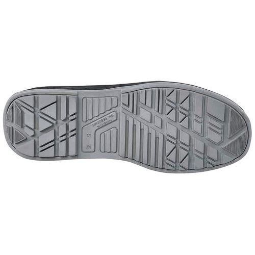 Chaussure conforme aux normes de sécurité EN ISO 20345 S3 SRC et convient à tous types d' environnements, au transport, à la logistique, au secteur tertiaire et des services.