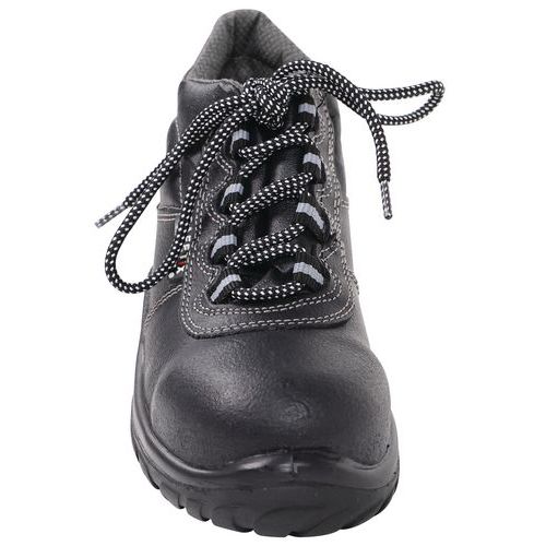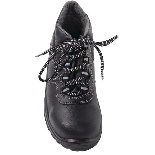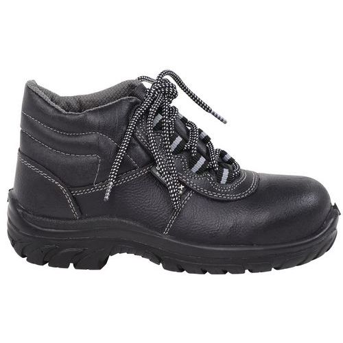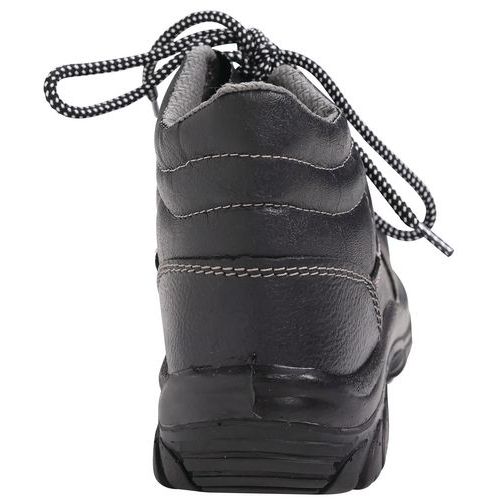 Chaussure de sécurité haute avec embout de protection en polycarbonate, et semelle anti-glisse Tige en cuir grainé de 2-0-2,2 mm d’épaisseur pour une meilleure résistance mécanique et durabilité Idéale sur les sols et environnements industriels Semelle légère et flexible, injectée PU2D antidérapante grâce à une structure à crampons ouverte pour une meilleure évacuation des liquides Talon décroché pour une sécurité renforcée, notamment sur les échelles