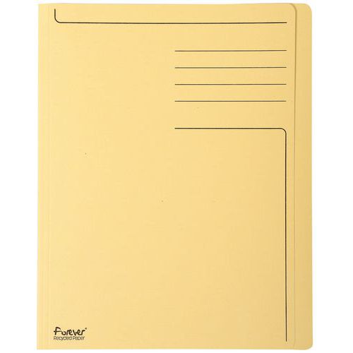 Chemise rigide à bord décalé Forever® 280g/m2 avec impression - 24x31 ,5cm Un bord décalé pour faciliter l'ouverture de la chemise. Des lignes pré-imprimées horizontales et verticales pour un classement identifié, clair et soigné. Cette chemise fait partie de la gamme Forever. Elle est fabriquée en carte 100% recyclée, certifiée Ange Bleu.