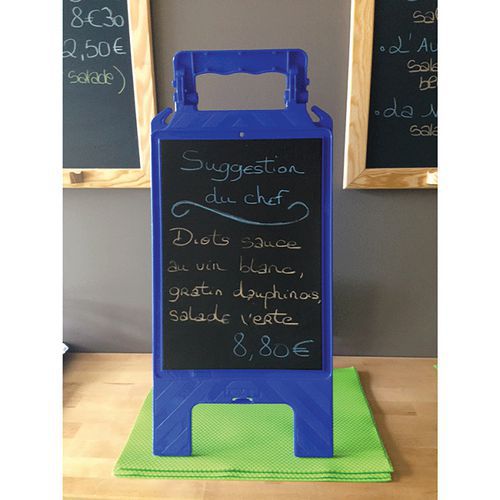 Chevalet avec message effaçable, Coloris: Bleu, Hauteur: 600 mm, Largeur: 275 mm, Épaisseur plié: 23 mm