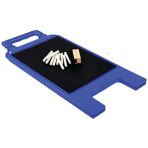 Livré avec une boite de craies ou un feutre (selon le modèle selectionné) et une brosse.