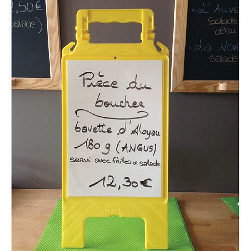 Chevalet avec message effaçable, Coloris: Jaune, Hauteur: 600 mm, Largeur: 275 mm, Épaisseur plié: 23 mm