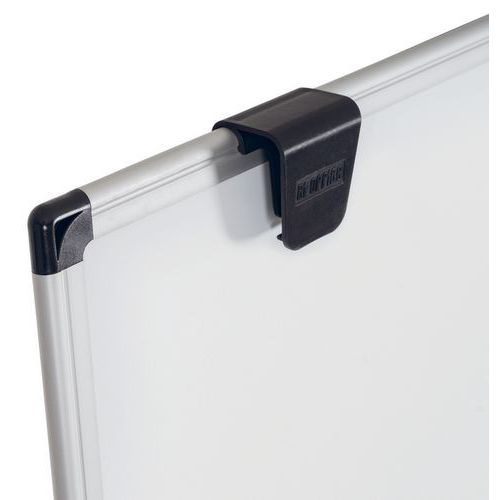 Comprend des crochets réglables pour blocs de papier pour chevalets et un plateau auget en plastique pour accessoires à l'arrière du tableau.