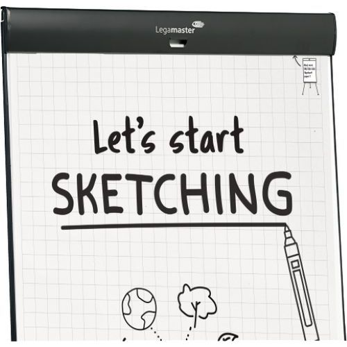 Contenu du colis : 1 Legamaster Sketch Pro chevalet de conférence trépied, 1Legamaster Sketch Eco bloc-papier quadrillé 1x 20 feuilles, 2 x Edding 31 EcoLine marqueur pour chevalets noir,1 porte-marqueurs, 2 bras latéral extensible.