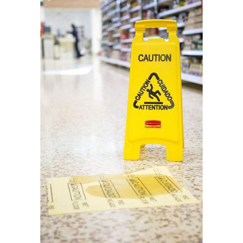 | Intitulé du produit | Chevalet de signalisation sol glissant multilingue 2 côtés -Rubbermaid, Coloris: Jaune, Message: Sol glissant |