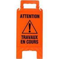 Chevalet orange fluo, Coloris: Orange fluo, Message: Travaux en cours, Hauteur: 600 mm, Largeur: 275 mm