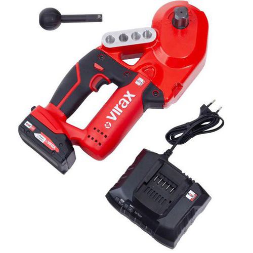 Cintreuse électroportative COMPACTE et LEGERE (seulement 4,9 kg). Pour cuivre jusqu'au Ø22mm - 7/8, Inox Ø18mm et Multicouche Ø26mm. Livrée avec 1 batterie 18V - 2Ah CAS et 1 chargeur rapide, Ø12-15-18mm, en coffret Virabox.