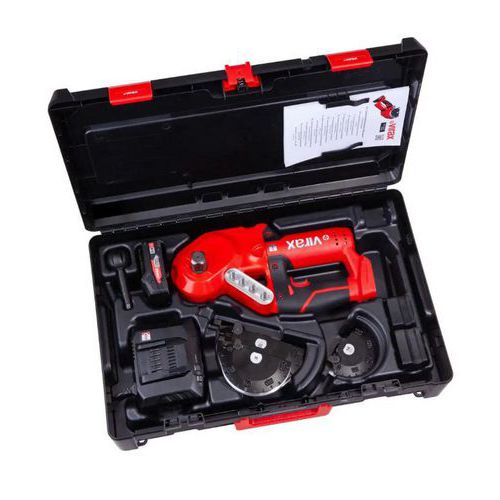 Cintreuse électroportative COMPACTE et LEGERE (seulement 4,9 kg). Pour cuivre jusqu'au Ø22mm - 7/8, Inox Ø18mm et Multicouche Ø26mm. Livrée avec 1 batterie 18V - 2Ah CAS et 1 chargeur rapide, Ø12-15-18mm, en coffret Virabox.