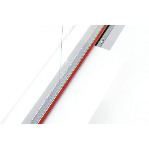 - Capot de protection transparent et indication du trait de coupe intégrée, permet de bien voir le trait de coupe sur toute la longueur.