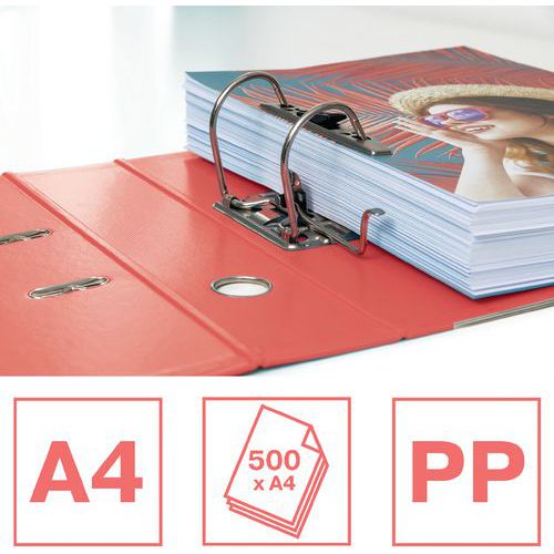 Classeur à levier dos 75 mm avec couverture carton recouverte de polypro pouvant contenir jusqu'à 500 feuilles A4 et doté d'un mécanisme à levier en métal.