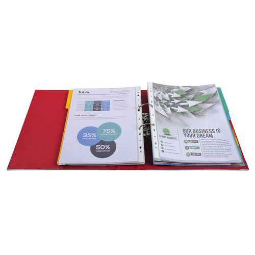 - Garanti 10 ans, le classeur Prem'Touch possède des renforts en coin pour durer.