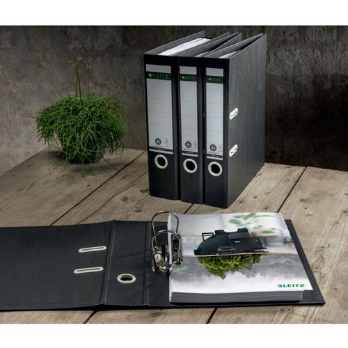| Intitulé du produit | Classeur à levier Re:Cycle, Nb d'anneaux: 2, Coloris: Noir, Largeur: 80 mm, Matériau: Carton |