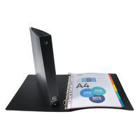 Classeur A4 polypropylène 4 anneaux dos 40 mm, Dos largeur: 4 cm, Nb d'anneaux: 4, Coloris: Noir