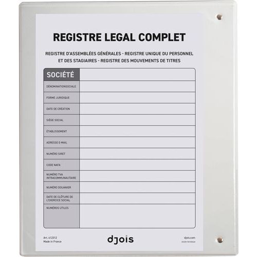 | Intitulé du produit | Classeur registre légal complet Smartfolder, Largeur: 275 mm, Hauteur: 32 cm, Couverture coloris: Blanc |