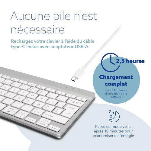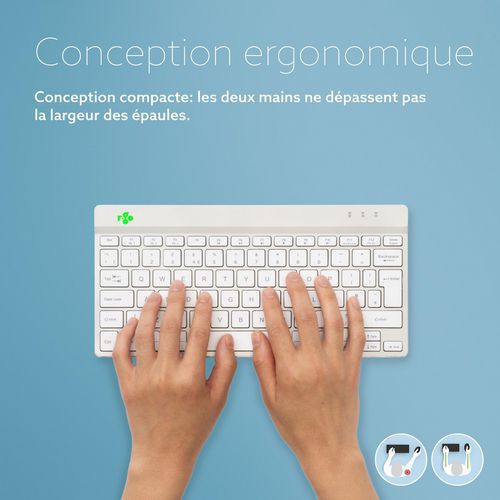 Clavier compact ergonomique avec logiciel de pause intégré Azerty (B) blanc