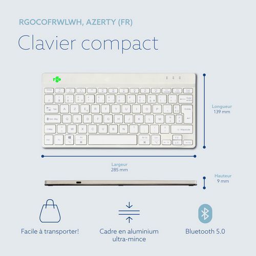 Clavier compact ergonomique avec logiciel de pause intégré Azerty F, non filaire, blanc