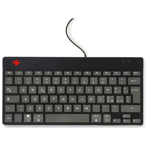 - Clavier ergonomique R-Go Compact Break Qwerty ultra-mince (6 mm) pour garantir des poignets détendus et plats pendant la frappe.