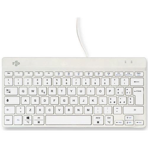 - Clavier ergonomique R-Go Compact Break Qwerty ultra-mince (6 mm) pour garantir des poignets détendus et plats pendant la frappe.
